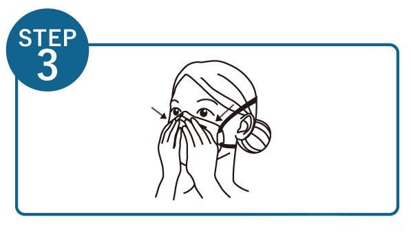両手でマスク全体を覆い、強く息を吐いて空気が漏れていないか確認してください。