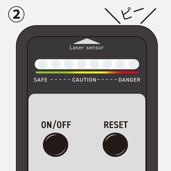 本体に搭載されたセンサー(受光部)がレーザー光を感知し、JIS C6802の最大許容露光量(MPE)(※1)を基準として、人の目に対する危険性を判定します(※2)。