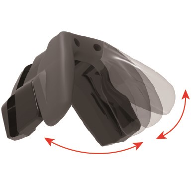 ステンレス芯材+エラストマーで、微調整が可能。任務内容や着用者の骨格や顔の形状等、眼とレンズの位置調整が必要な場合でも、自由に可動し調整可能。