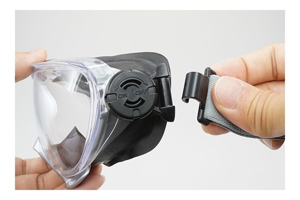 ゴーグルフックをつけ外しするだけで簡単にベルト交換が可能。