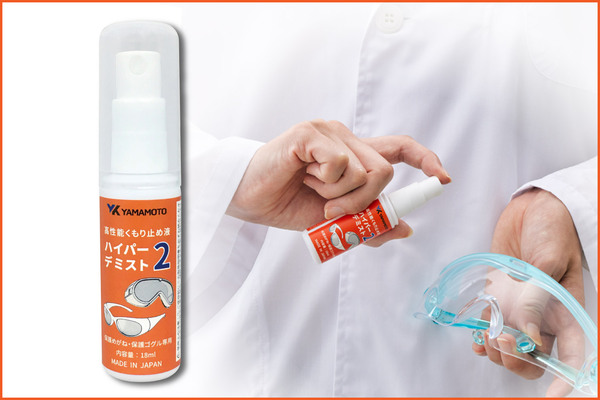 くもり止め効果が低下した場合には、後塗りの高性能くもり止め「ハイパーデミスト2」(別売)をおススメします。毎日の作業前に塗布していただき、もし作業途中でくもり止め効果が低下した場合には再度、塗布してください。