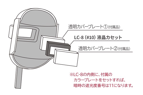 溶接面にセットするだけで、作業効率・安全性アップの液晶溶接面になります。