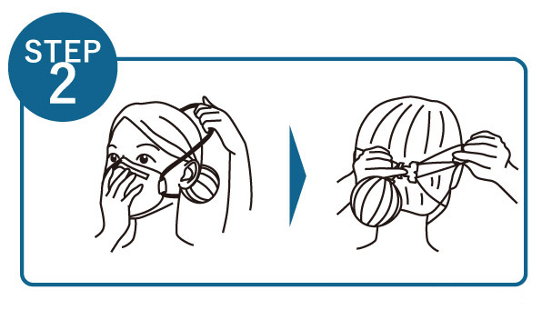 ※バンドを引っ張り、マスクが顔にぴったりフィットするように調節してください。